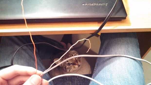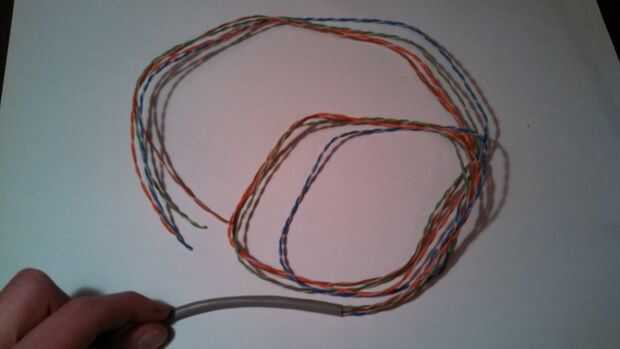 - Tira de la funda exterior del cable Cat5e bastante por lo que la mitad de los cables puede alcanzar el lado izquierdo de su defensa y la mitad puede llegar a la otra mitad. (imagen 6)