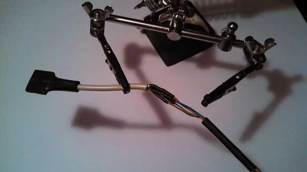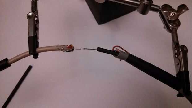 - Corte y deslice el calor de 3/32 pulgada tubo del encogimiento sobre los primeros cables que se suelde.