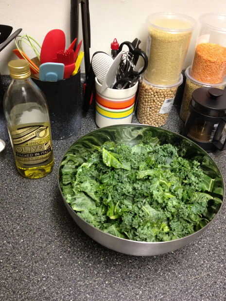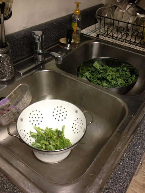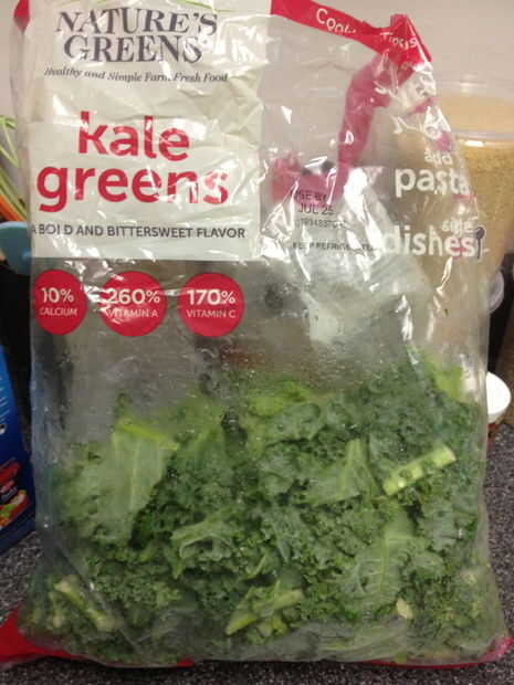 Usted querrá usar tanta kale ya está pensando en comer. He utilizado aproximadamente la mitad de una libra o un cuarto de la bolsa de 2 libras. Tener en cuenta que la col reduzca por la mitad (ver fotos)