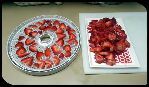 Disponer las rebanadas en las limpieza-a-pantallas en las bandejas del deshidratador y deshidratar durante 4-6 horas a 135 grados Fahrenheit. Variarán dependiendo del grosor de sus rodajas. Para mina, tomó cerca de 5 horas.