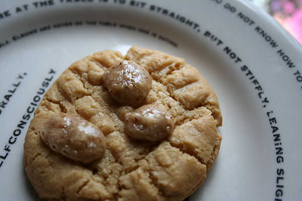 Nota: Estos chips/bocados hacen un fantástico postre topping, un sabroso aperitivo por el puñado, y pueden ser utilizados para la cocción. No tienen su forma absolutamente como comprado mantequilla de maní o chocolate bocados, pero siempre y cuando estén congelados antes de ser añadido a una masa para galletas, llevará a cabo su forma. Para ilustrar, aquí es una que he añadido una foto de una galleta que horneado con algunos de los bocados en la parte superior. ¿Ver cómo llegar melty, pero no fundirse totalmente?