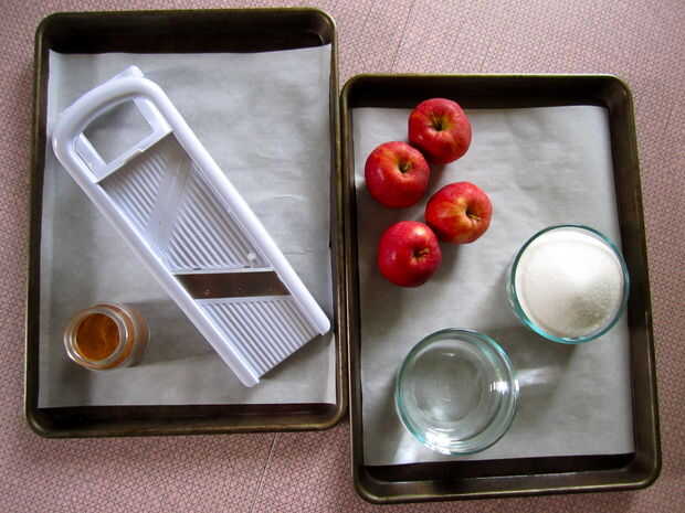 - una mandolina o un cuchillo afilado y una tabla de cortar