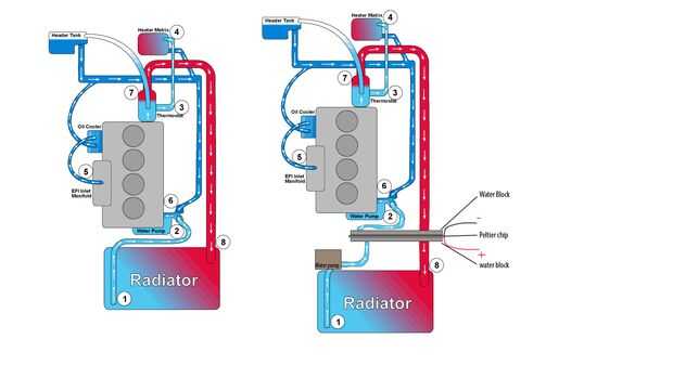 Así que estoy pensando esto sería una gran manera para extraer más energía del motor de combustión interna, para ser usado con un motor eléctrico en un coche híbrido. Solamente abajo lados que veo sería la transferencia de calor desde un bloque de agua a través de la viruta peltier en el bloque siguiente a ser expulsado y el hecho de que necesita 2 bombas de agua...
