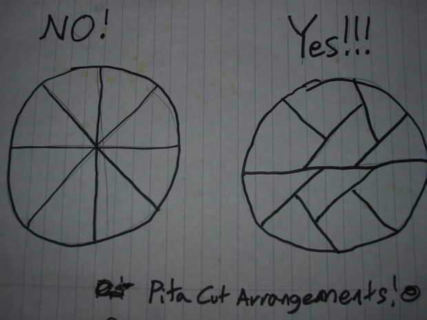 Ahora decidir cómo cortar la pita! Usted podría ir para un aburrido corte de estilo de pizza, o usted podría ir con el Super Awesome Cutting Arrangement (tm). The Super awesome cutting Arrangement (TM) hace que tenga más formas de comer o admirar (aunque no va a ser mucho tiempo antes de que todos ellos Haz devorados). También puede subir sus propios diseños al azar!