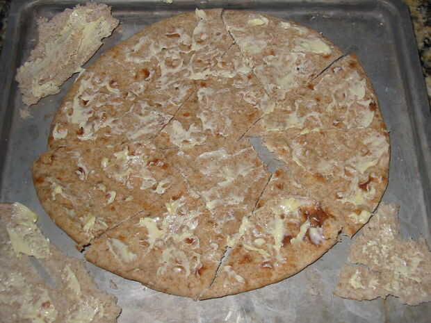 Paso 1: ingredientesPara esta receta necesitas:-pitas-sal mantequilla-ajo en polvoPaso 2: Cortar las Pitas! Puede cortar las pitas de cualquier manera que lo haría con gusto, pero mi manera favorita es como una pizza!Paso 3: mantequilla Derretir mant