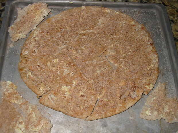 Espolvorear el azúcar Canelo liberalmente en la pita con mantequilla para que se cubre con azúcar-ey bondad. Canela + azúcar = bondad yummy!