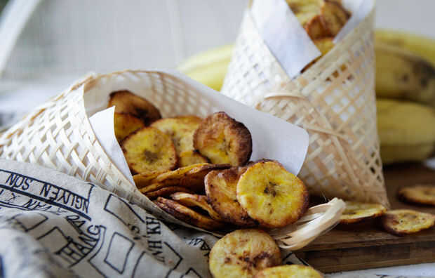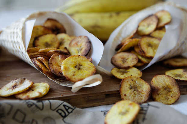 Plátano es un pariente del plátano salvo que son mucho más grandes y necesitan ser cocinados antes de comer. Son grandes para muchos tipos de platos dulces y salados, dependiendo de su etapa de madurez de verde a amarillo a negro. Son consideradas un almidón seguro y los tostones son un gran reemplazo para las patatas ya que dan una textura similar pero no tienen la dulzura o el olor de un plátano. Usted necesitará plátanos verdes para esta recetas, amarillo o negro plátano no funcionará.