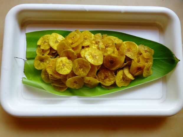 Chips de plátano son muy famosos en el sur de la India especialmente Kerala virutas del plátano son muy famosos y son un aperitivo perfecto para la hora del té. Hemos probado la versión más saludable de este aperitivo frito profunda por respaldo que