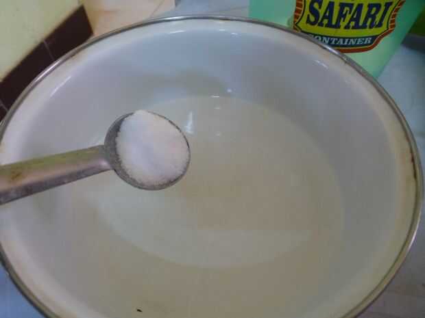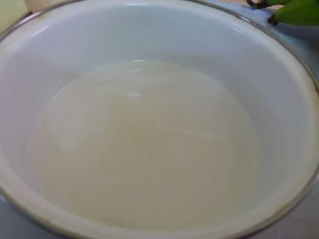 Como he mencionado anteriormente, una mezcla de sal y la cúrcuma en polvo con agua debe añadirse a las rebanadas que se fríen. Preparar la mezcla y mantener listo.