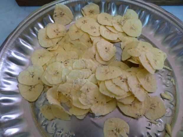 No es necesario secar las rodajas. Se puede utilizar para freír inmediatamente. También puede hacer rebanadas directamente en el aceite caliente manteniendo el plátano y la máquina de cortar sobre el aceite. La mayoría de los fabricantes de chips Nendran comerciales como solamente. Pero tenga cuidado de aceite caliente en la cacerola si se desea como.