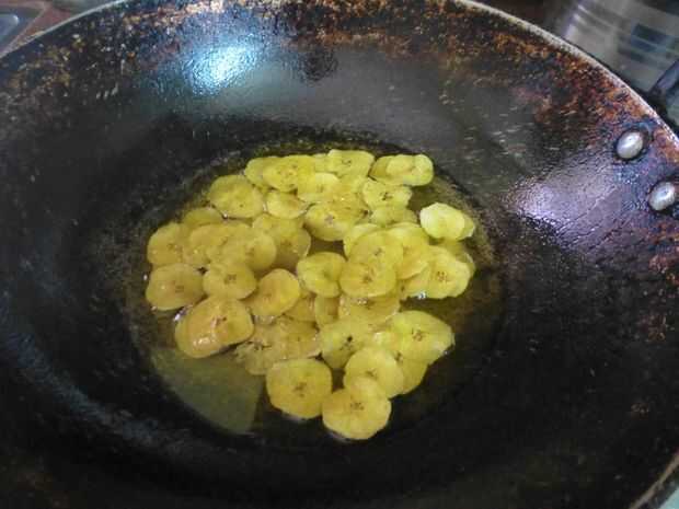 Chips de plátano son muy famosos en el sur de la India especialmente Kerala virutas del plátano son muy famosos y son un aperitivo perfecto para la hora del té. Hemos probado la versión más saludable de este aperitivo frito profunda por respaldo que