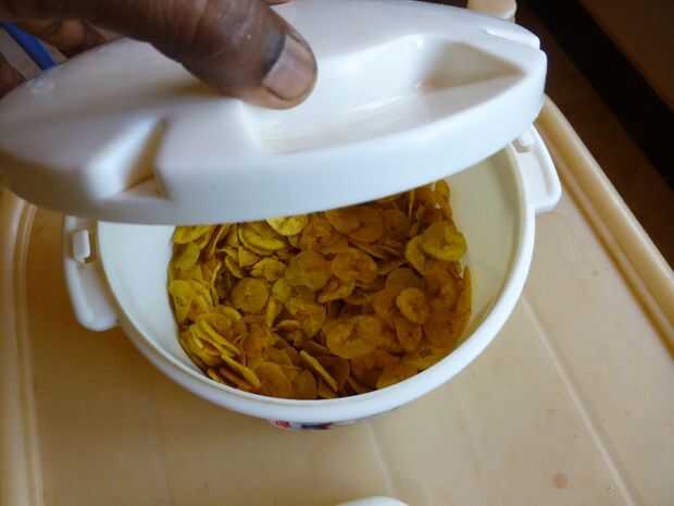 Los chips Nendran pueden guardarse en un recipiente hermético por un tiempo muy largo. Disfrutar las virutas con una taza de café caliente en cualquier momento que te gusta. También sirve como un excelente snack para invitados inesperados en su casa.