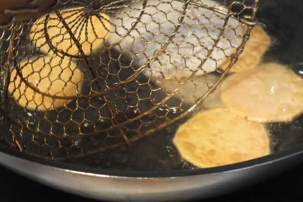 Colocar en un pedazo de verdura, si chisporrotea como en el 1er cuadro el aceite está listo