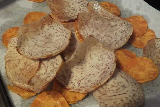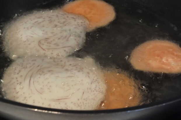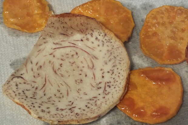 Hornear hasta que los bordes comienzan a encresparse en la raíz de taro.