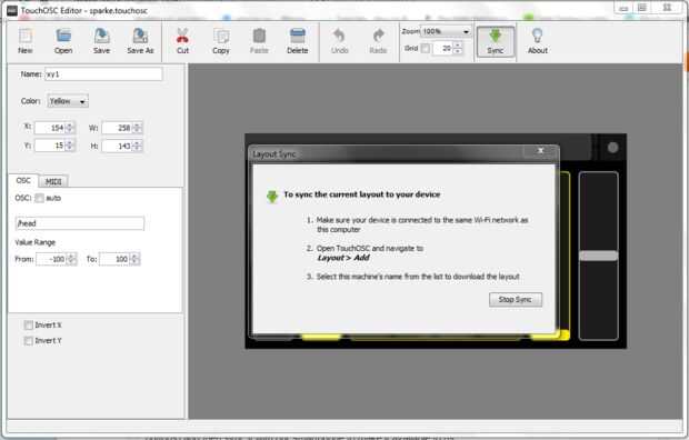 Para diseñar nuestro controlador, utilice el Editor de TouchOSC a disposición nuestros controles y establecer qué gamas de valores serán enviadas a nuestra chispa (utilizar rangos de 0 a 100 para los brazos, -100 a 100 para la cabeza, cuello y pistas y a 1 o 0 para los botones) y luego sincronizarlo con nuestro smartphone para que esté disponible para nosotros.