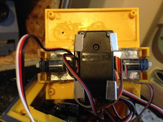 (Nota puede que necesite cortar los agujeros mounding en el servo del sí mismo como estos probablemente bloquearán la parte posterior placa al intentar volver a conectar más tarde, por lo que sería más fácil hacer esto).