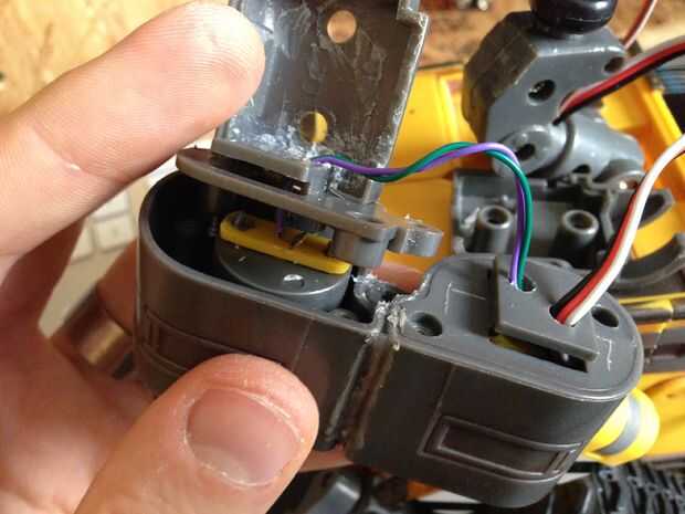 Similar al encaminamiento de los cables de servo cabeza, ejecutarlos de la parte posterior de la Asamblea principal y en la parte posterior de la unidad inferior del cuello fuera de la base, a través de la articulación del cuello y en el cuerpo principal. Una vez por cable mediante prensado en algunos encabezados de mujer puente listos para conectar al final.