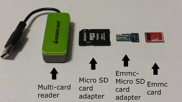 Ahora que el archivo .img ha sido "descomprimido" necesita quemar a uno de los dispositivos de almacenamiento. (Nota: Si usted ha decidido utilizar la tarjeta eMMC como uno de los dispositivos de almacenamiento, probablemente necesitará un lector de tarjetas externo usb.)