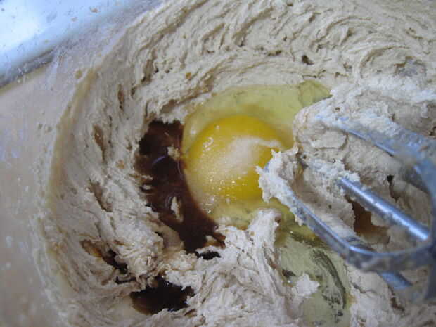 galletas de chispas de Chocolate de la materia.Paso 1: Crema de dos palos de temperatura de la mantequilla sin sal con una buena cantidad (aproximadamente 1.5 c) de azúcar morena. Un mezclador es bueno, pero también funciona una cuchara de madera.Pas