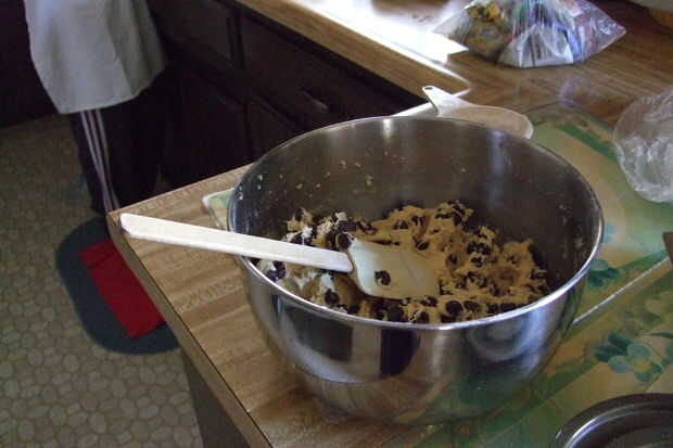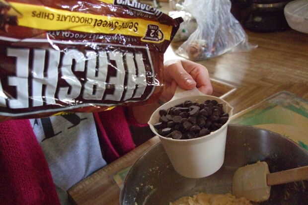 4. por último, revolver uniformemente en los chips de chocolate y nueces.
