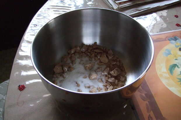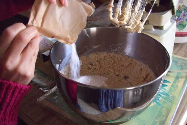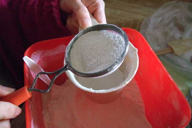 3. a continuación, tamizar juntos la harina y el bicarbonato de sodio y agregar a la mezcla hecha en el paso 2.