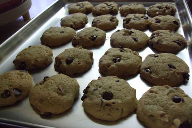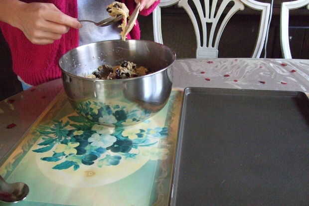Ahora, si usted recogió su masa, probablemente necesita moldear la masa en círculos. Si se corta la masa en círculos, puede que necesite de "retoque" las rondas si fueron deformados cuando mueve a la bandeja para hornear galletas. (Tienes que hacerlas redondeadas. De lo contrario va a convertirse en suave chocolate chip nuez trozos o gotas en lugar de la normal en forma de cookies. Valiosa lección aprendí.)