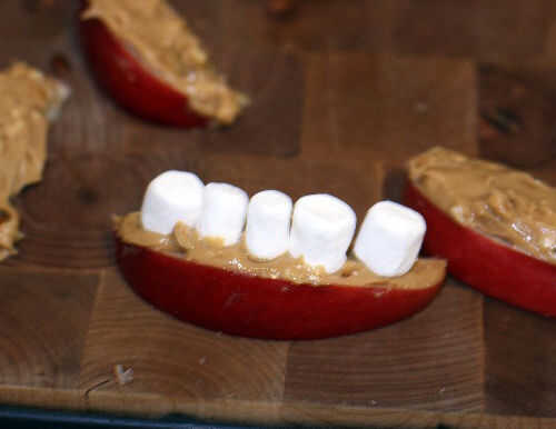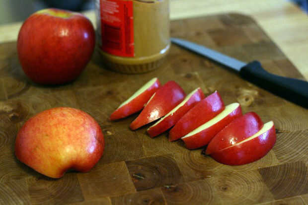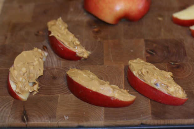 Un lado de cada rebanada con mantequilla de cacahuete se separó.