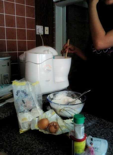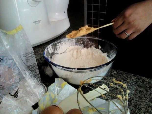 -Batir el azúcar, huevo y mantequilla hasta que esponje.