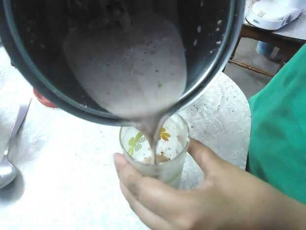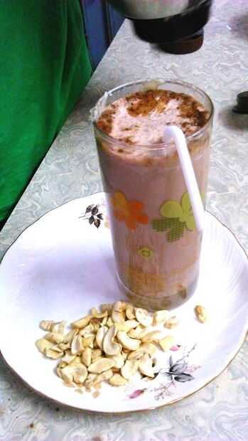 Ahora añadir algunos condendnsed leche, castañas de cajú y raisen, cubitos de hielo...