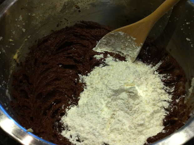 Usar una cuchara de madera para revolver la harina y la leche.  Asegúrese de que usted alterna entre poner la harina y la leche.