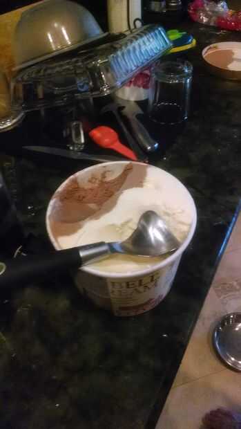 ● tomar 2 cucharadas grandes de helado de chocolate y una cucharada gran de vainilla en la licuadora. Si desea un batido de vainilla achocolatados añadir algún Extracto de vainilla; alrededor de 2 cucharaditas. Añadir 1/4 taza de leche, media taza pesada para batir crema.