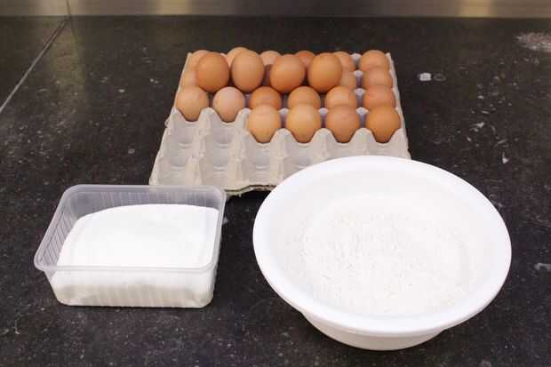 Klop eieren twee samen op met de 200 gramos suiker en meng de bloem eronder tot u een homogeen beslag bekomt. Cuando u klaar había doblado met het beslag strijkt u uit deze op een plaat bakt de at u deze en op de horno de 180°.