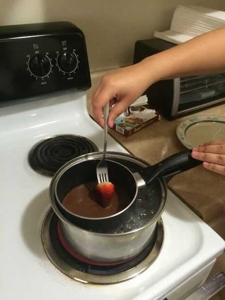 2. Ponga el tenedor en fresa y chocolate de fresa con una cuchara