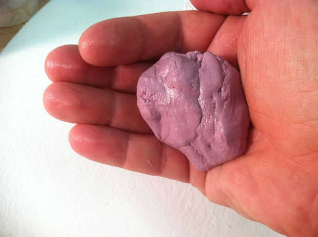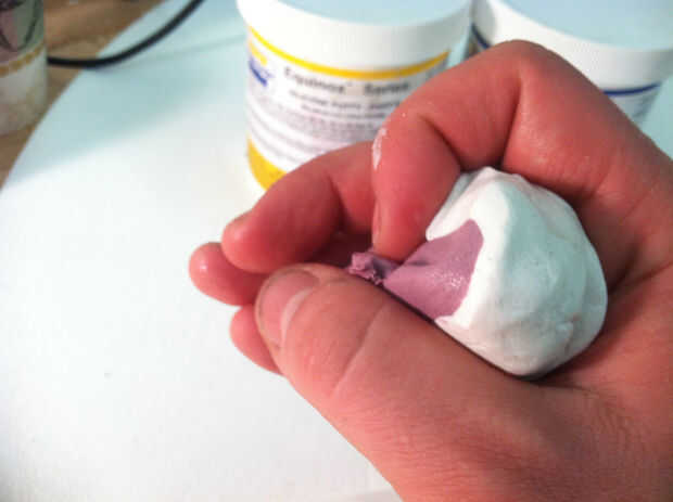 (1) el proceso es muy sencillo - coge dos trozos de igual tamaño y hacerlas rodar en bolas. Mezcla de parte B (el material de color púrpura) primero y luego incorporar un (material blanco). Mezclar hasta homogénea.