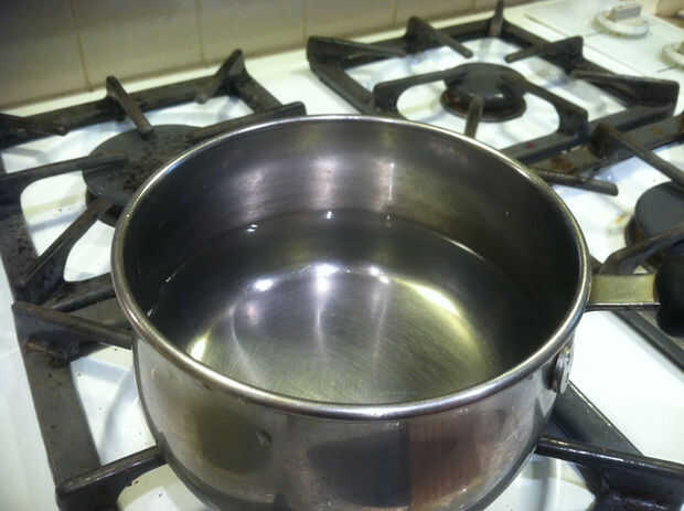(2) poner chocolate en segundo pote encima la olla con agua hirviendo