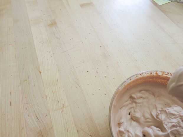 Empezar a batir encima de su pesada para batir crema mix (comenzó con un batidor y rápidamente se dio cuenta de que iba a ir loco y conectado a una batidora de mano).