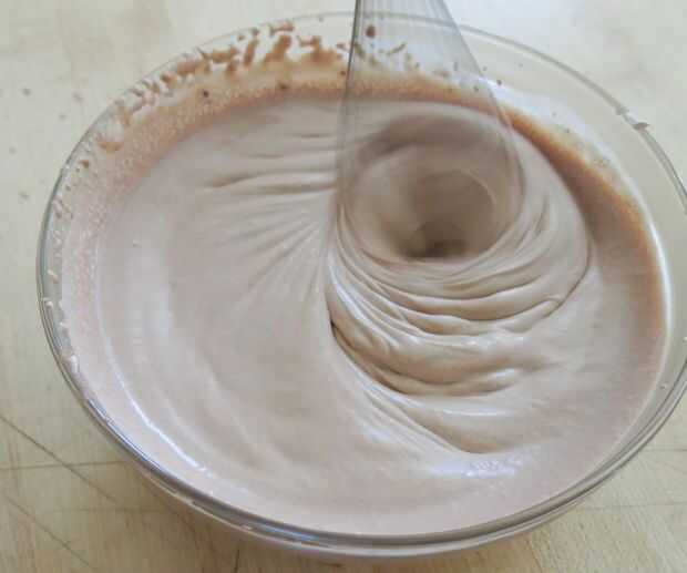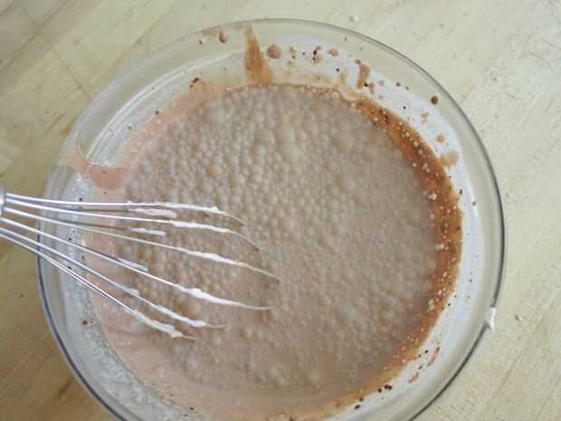 Poco a poco las burbujas desaparecerán y poco a poco lo verás Haz más grueso. Si te preocupa demasiado la mezcla, simplemente apague su mezclador y saque el accesorio batidor para ver la consistencia.