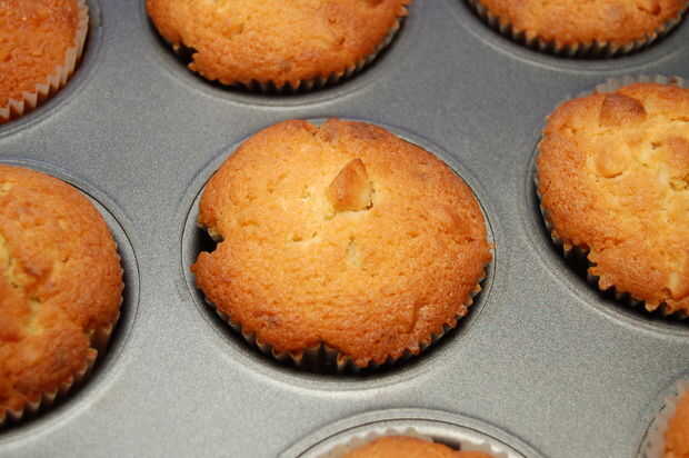 - Llene cada caso hasta cerca de dos tercios, luego coloque la bandeja en la para alrededor de 20-25 minutos hasta que estén doradas, marrón y firme.
