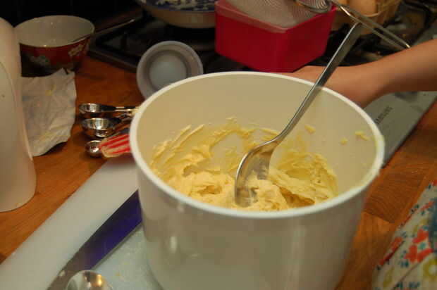 - Usando una batidora eléctrica batir el azúcar, mantequilla, huevos y vainilla extracción de alrededor de 3 minutos a la máxima velocidad hasta ligero y mullido.