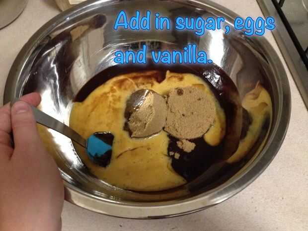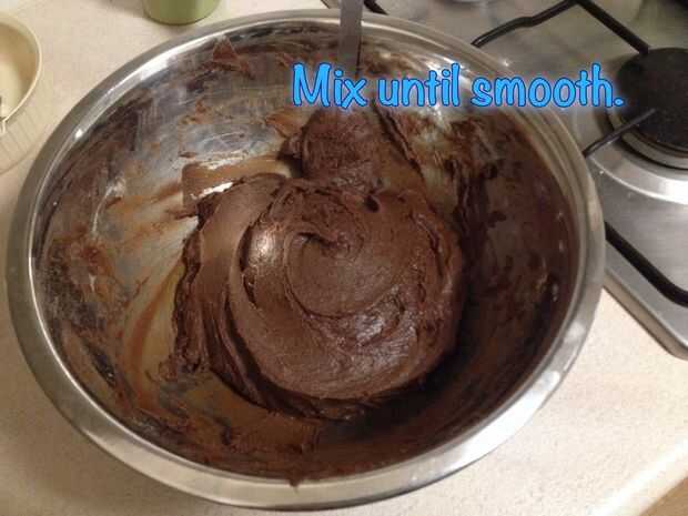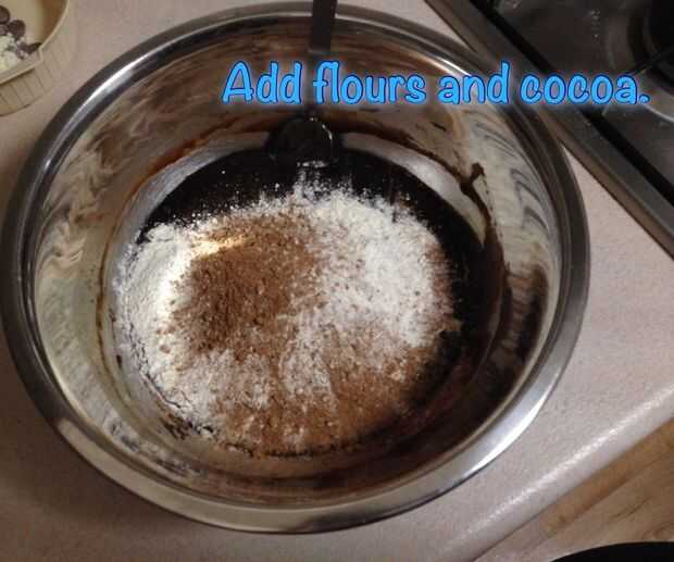 Agregue la harina y el cacao y revolver hasta que la masa quede lisa.