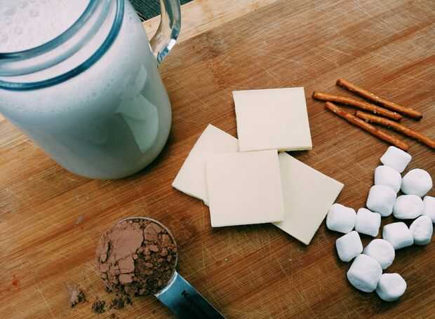 chocolate caliente hecho en casa con unos pocos ingredientes simples e infinitas posibilidades.Paso 1: conseguir los ingredientes Lo que necesita: derretir el chocolate (chocolate con leche y chocolate blanco), saborizante (esto se puede ejecutar de