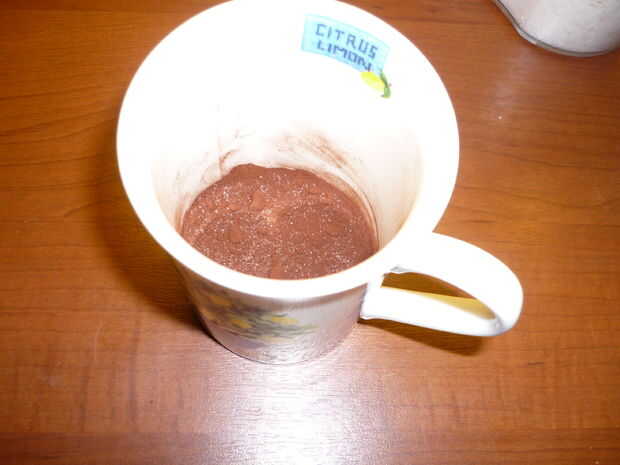 Ahora poner 2-3 tespoons suggar en la taza y mezclar con el cacao.