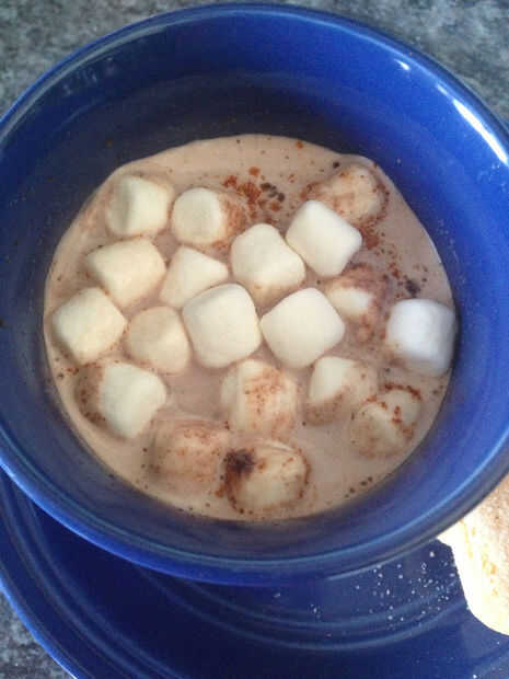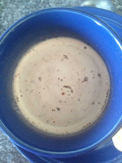 Polvo de Cayena chispitas en su leche con chocolate caliente