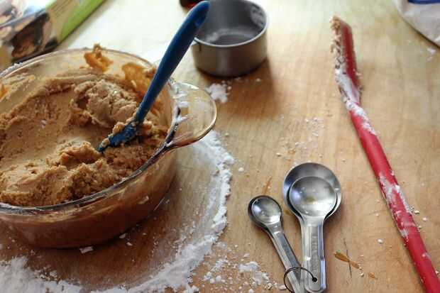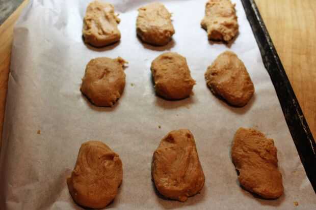 Lugar el relleno de mantequilla de maní sobre una bandeja cubierta con papel sulfurizado.
