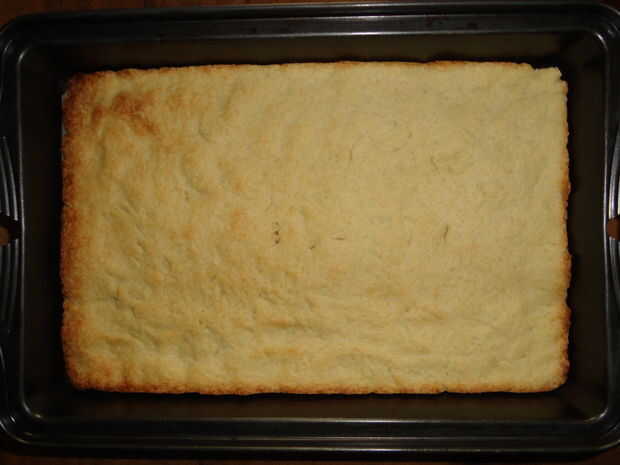 Extender la masa en la bandeja y hornear durante unos 20 minutos, o hasta que esté dorado.