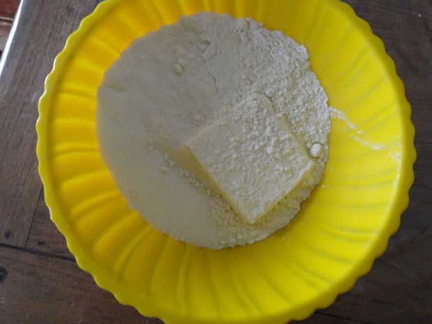 Colocar la manteca, el azúcar y la flor en un procesador de alimentos y combinar hasta que se forme una masa.