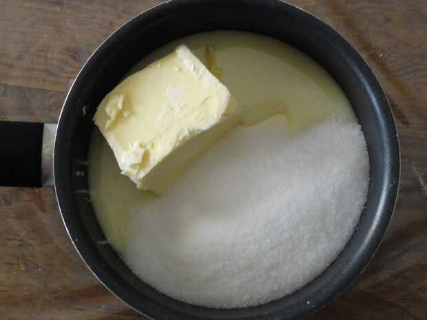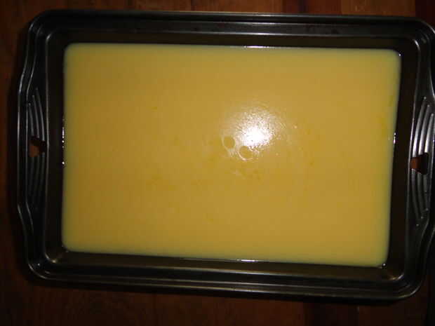 Verter sobre las galletas de mantequilla y enfriar en la nevera hasta que se establece.