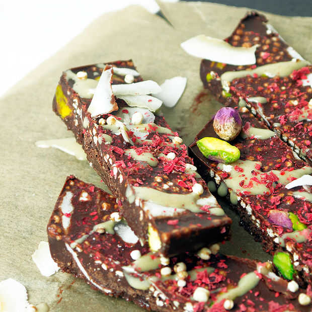 Chocolate Xocai nuggets enriquecen esta torta brownie sin azúcares añadidos, sólo gránulos de fructosa y compota de manzana en lugar de azúcar y mantequilla.Las pepitas de chocolate en esta receta nutritiva, cargado con fibra, balance del colesterol,