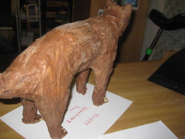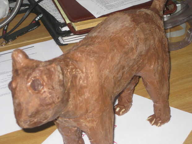 Todo lo que necesitas hacer ahora es cortar todo el papel maché y cinta adhesiva! puede hacer esto con cuidado con una cuchilla x-acto. Usted puede cortar en cualquier manera que usted desea si usted no se preocupa por conservar el molde. Después de esto, se puede volver sobre su gato con chocolate derretido para fijar las áreas no-tan-bien parecido ni burbujas. También puede Agregar ojos, garras (frutos secos), o su gato con chocolate de repostería de color si usted lo elige.