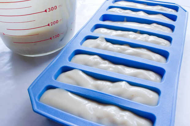 Mezclar los ingredientes y verter en cubiteras para congelar hasta el sólido. Una vez sólido, cortar piezas en pequeños pedazos medianos (aproximadamente el tamaño de la punta de su dedo pulgar) y almacenar en una bolsa de congelador seguro o recipiente hasta que se necesite.